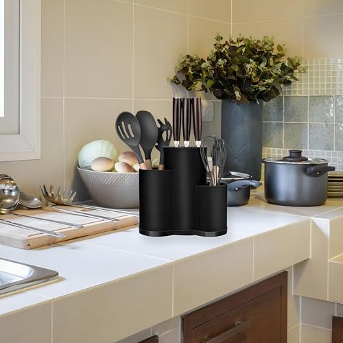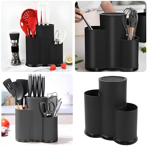Generic - منظم وصفاية السكاكين - قم بتحسين مساحة مطبخك باستخدام منظم السكاكين الفريد 3 في 1 الذي يجمع بين ميزات المبراة والحامل، وهو مثالي لاحتياجات كل طاهٍ منزلي.