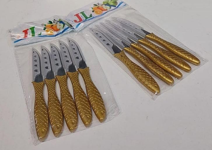 - DECORATIVE DESIGN: Each knife features an eye-catching gold-coloured handle with textured detailing, combining functionality with aesthetic appeal for your kitchen
