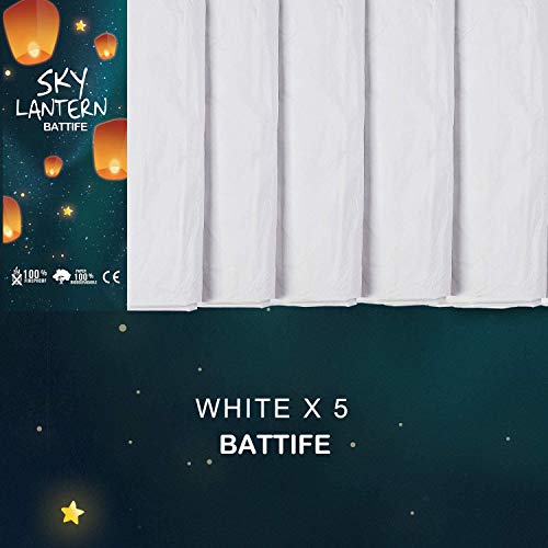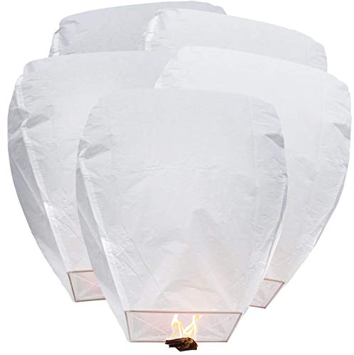 KNOWY - فوانيس ورقية بيضاء طائرة في السماء قابلة للتحلل البيولوجي، عبوة من 5 قطع من نوي