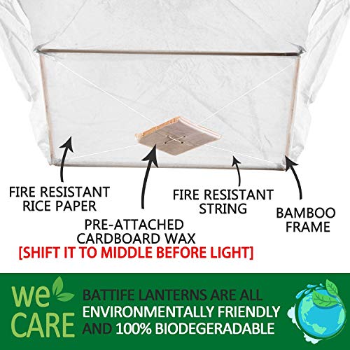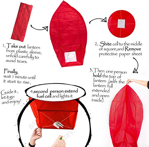 - آمنة وناجحة بنسبة 100% - اتبع تعليماتنا، أطلقها في السماء. يمكن للفوانيس الصينية أن تطير حتى ارتفاع 914.4 م حتى تصبح مصباحًا صغيرًا في السماء. لا تنس تقديم أمنياتك حتى تأخذها الفوانيس الصينية الطائرة إلى النجوم.