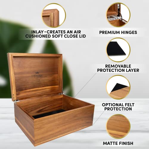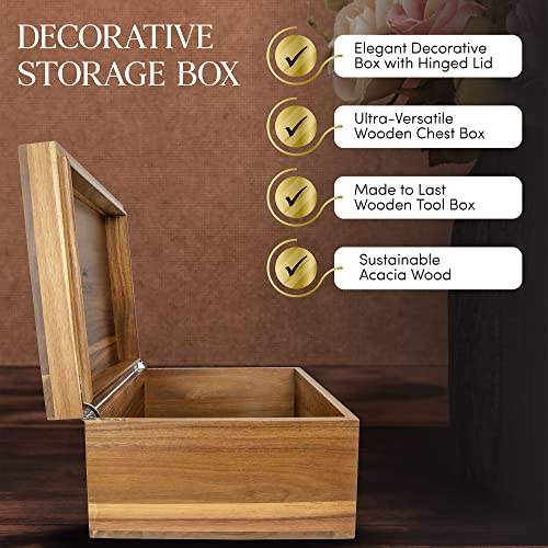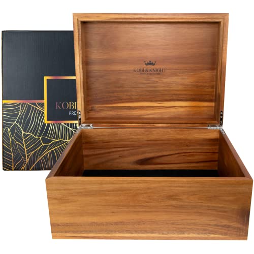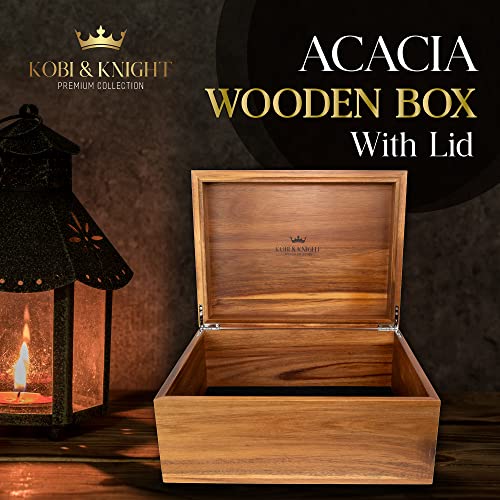 Kobi & Knight - Kobi & Knight Premium Acacia Wooden Storage Box - Large Wooden Box with Hinged Lid - Sturdy Wood Box for office or home - Chic Memory Keepsake Box - Versatile Decorative Box - Gift Ready Stash Boxes