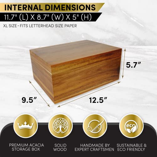 - LARGE KEEPSAKE BOX 12.5" X 9.4" X 5.6": Larger than most wooden boxes, our spacious wooden keepsake box will fit all your valuable documents, accessories or jewelry. Fits Letter size documents.