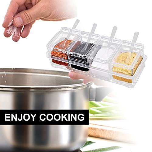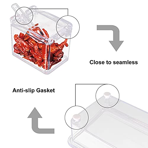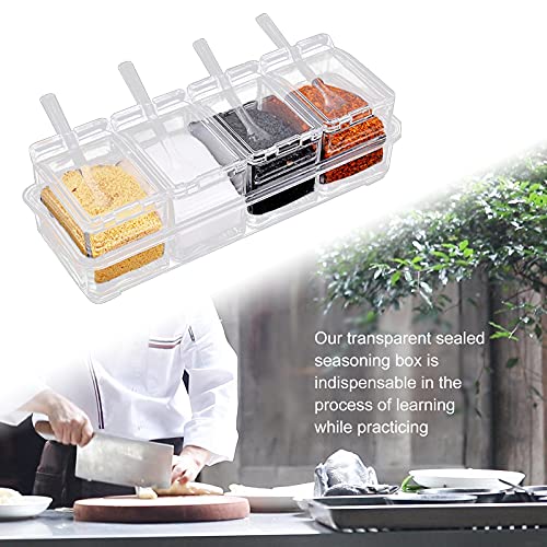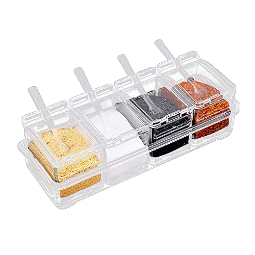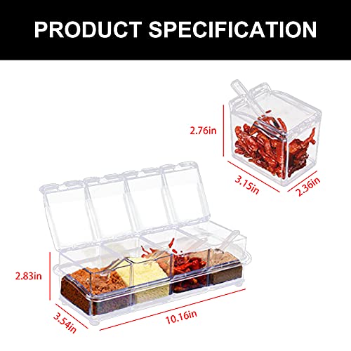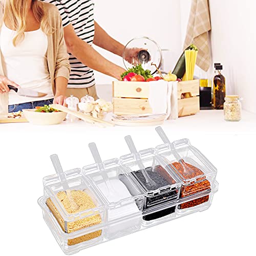Spaceshoop - KOBSAINF Clear Seasoning Rack Spice Pots 4 Piece Acrylic Seasoning Storage Seasoning Container Cruet with Cover and Spoon Set for Kitchen