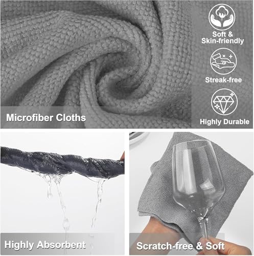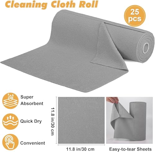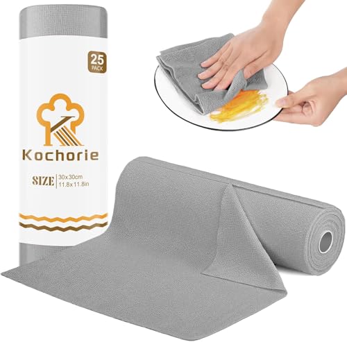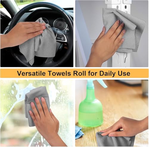 Generic - Kochori 25 Pack Reusable Microfiber Cleaning Cloths, Tearaway Towel Roll, 11.8 x 11.8 Inches, Super Absorbent for Dishes, Kitchen, Car - Grey