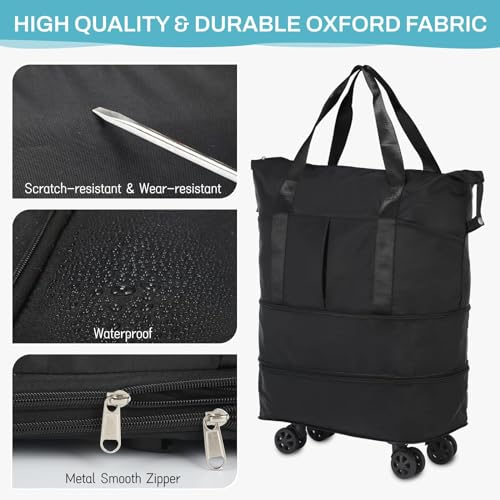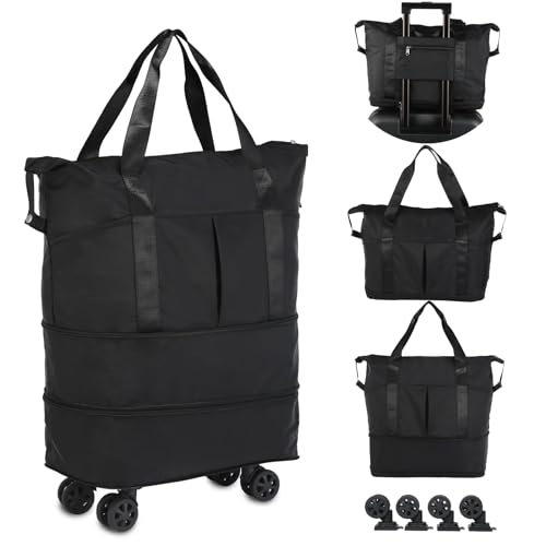 Koeay - Koeay Rolling Duffle Bag with Wheels, Expandable Foldable Duffel Bag with Wheels for Travel, Rolling Luggage Carry on Duffel Bag, Wheeled Travel Duffle Bag, Large Weekend Bag (Black)