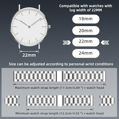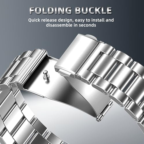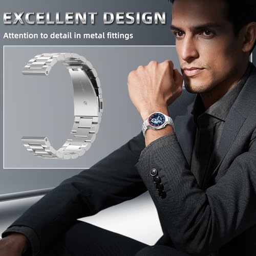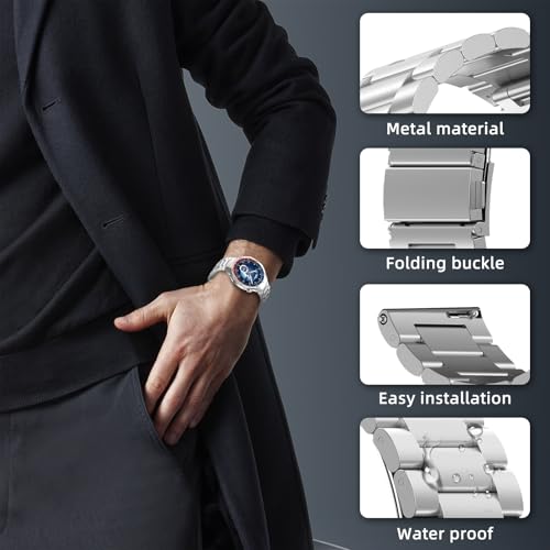 KoGiio - 22 mm Watch Band Compatible with Amazfit Balance/Bip 5/Cheetah Pro/Huawei Watch GT4 46 mm /3 46 mm /Watch 4 Pro /4/Ultimate/Buds, Stainless Steel Strap