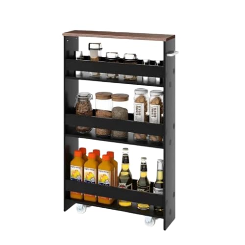 KOMFOTTEU - KOMFOTTEU 4 Tier Storage Trolley with 360° Swivel Wheels, Sliding Trolley with Slim Handle, for Bathroom, Kitchen, Laundry (Black and Brown, 47.5 x 25 x 80.5 cm, Without Socket)