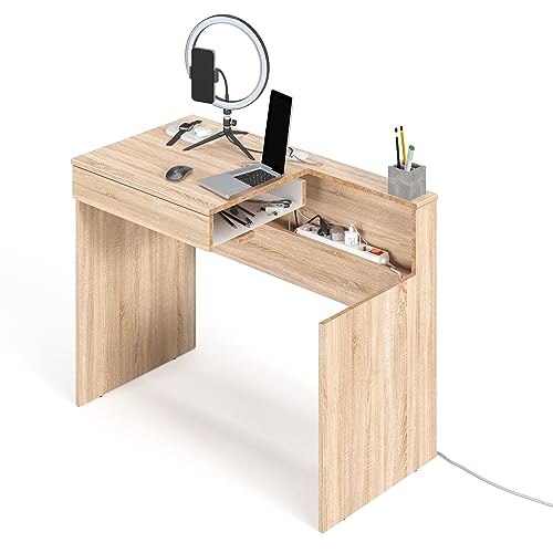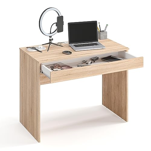 KOMTO - KOMTO Sonoma Oak Desk with 1 Drawer - 53D x 100W x 76H Office Computer Desk with Storage space