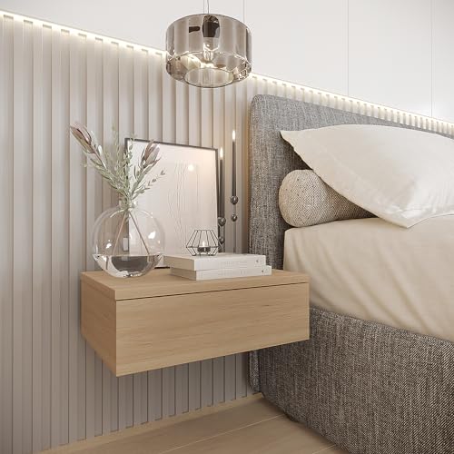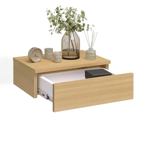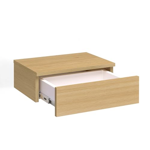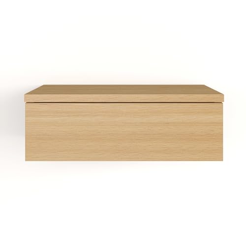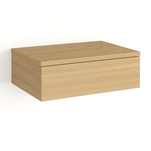 KOMTO - KOMTO Wall Shelf with Drawer Beech Bedside Table Hanging Bedside Table Wall Drawer Bedside Cabinet Hanging Monaco 42 x 30 x 14 cm