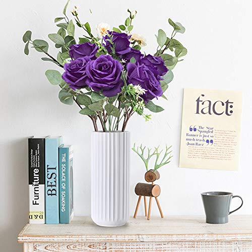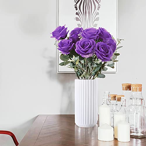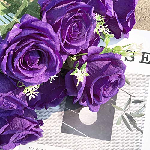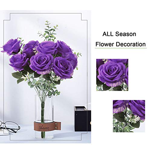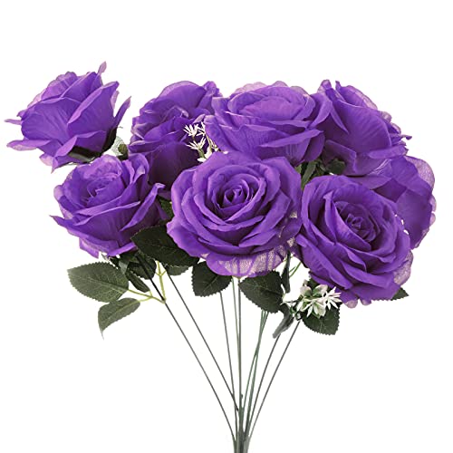 KONCHILE - Artificial Roses Bouquet Silk Flower 10 Branch 10 Heads Big Fake Rose Wedding Bridal Floral Arrangement Home Office Party Garden Decor (Purple)