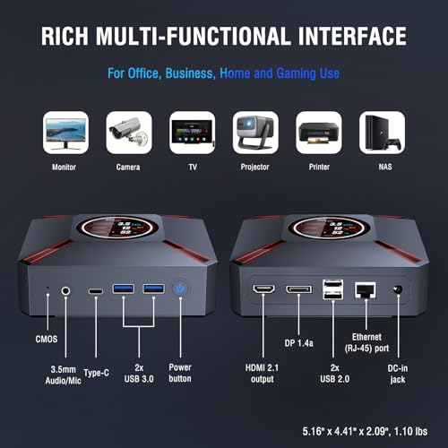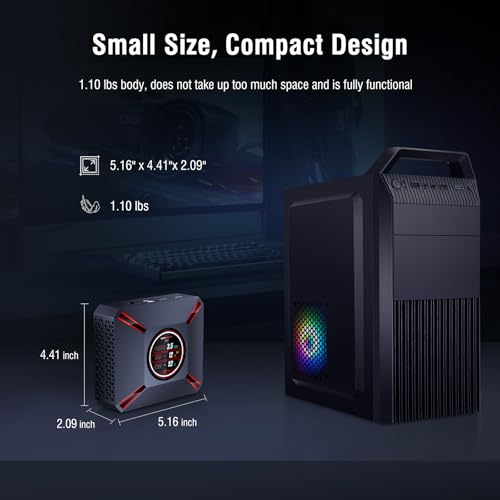 - شاشة ذكية: يأتي جهاز الكمبيوتر الصغير M9 i9 مع شاشة ذكية فريدة مدمجة في الغطاء. بمجرد التشغيل، تضيء الشاشة وتوفر بيانات أداء في الوقت الحقيقي، مثل درجة حرارة وحدة المعالجة المركزية والحمل والتردد. فهو لا يضيف وظائف فحسب، بل يكمل أيضًا التصميم الأنيق، حيث تسهل هذه الميزة مراقبة صحة النظام وأدائه في لمحة واحدة، مما يساعدك على إدارة الكمبيوتر بشكل أكثر فعالية