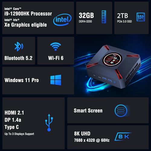 - كمبيوتر صغير انتل كور i9 الجيل الثاني عشر: يعمل الكمبيوتر الصغير M9 من كوتيجرز بمعالج انتل كور i9-12900HK (14 نواة، 20 خيط، ذاكرة تخزين مؤقت 24 ميجابايت، حتى 5.0 جيجاهرتز) وبطاقة رسومات انتل ايريس اكس اي، مما يجعله مثاليًا للألعاب الخفيفة وبث الوسائط وتحرير الصور والمزيد. يتفوق في التطبيقات المنزلية والتجارية.