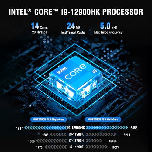 KOOTIGERS - كمبيوتر M9 كور i9-12900HK من كوتيجرز، 14 نواة/20 سن، حتى 5.0 جيجاهرتز ذاكرة رام 32 جيجابايت 1 تيرا منفذ الملحقات الإضافية السريع 3.0 اس اس دي، ار جيه 45، 1000 ميجابت في الثانية شبكة محلية 4 منفذ USB
