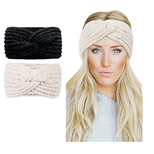 Kordear - Womens Winter Knitted Headband - Warm Crocheted Hairband, Chenille Headwrap Twist Hair Band Chunky Soft Knit Ear Warmer Crochet Knitted Widen Turban Wraps (Black a)