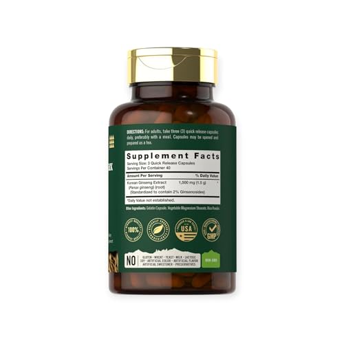 NutraNova Labs - Korean Panax Ginseng 1500mg | 120 Capsules | Herbal Energy & Focus Support | Natural Adaptogenic Formula for Endurance & Daily Vitality