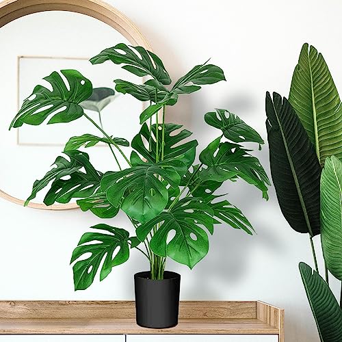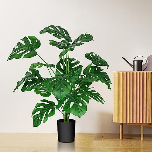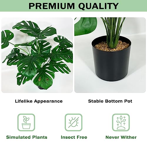 - 【Artificial Monstera】Our faux potting Monstera is designed for a realistic look but without the hassle of taking care of real plants. It won't wither or die without watering, sunlight, fertilizing like a live plant needs. There is also no bother of insects that attracted by real plants, saving your energy while still being able to enjoy the vibrant color that will never fade