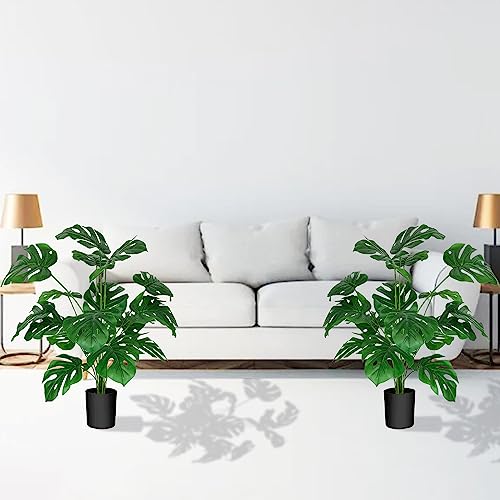 koretech - 2 Pack Artificial Trees 28 Inch Faux Monstera Deliciosa Plant Fake Monstera Tree for Home Office Decor