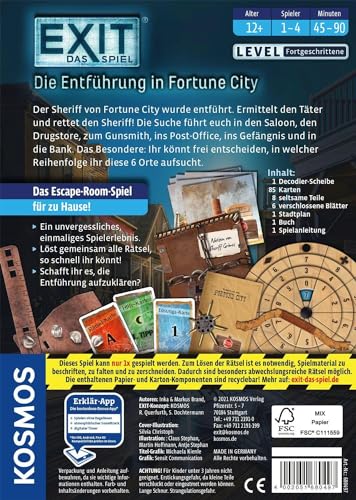 Kosmos - KOSMOS 680497 EXIT® - The Game - The Abduction in Fortune City, Level: Advanced, Escape Room Game, EXIT Game for 1-4 Players from 12 Years, Unique Board Game