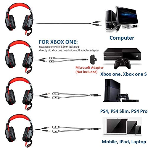 KOTION EACH - Kotion Each Gaming Headset - With Mic, Volume Control and Cool LED Lights - Compatible with PC, Laptop, Smartphone, PS4 and Xbox One Controller, G2000 (Red)