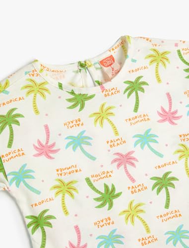 KOTON - KOTON Baby girls Palm Printed Short Sleeve Crew Neck Tshirt