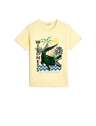 KOTON - KOTON Boys Crocodile Printed Sequined Short Sleeve Crew Neck Tshirt