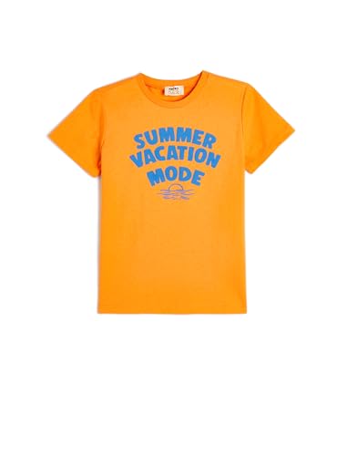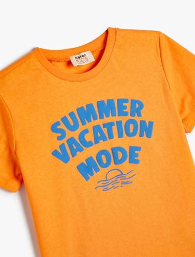 KOTON - تيشرت قطن عصري بأكمام قصيرة ورقبة دائرية ضيقة مطبوع عليه شعار للأولاد من كوتون عبوة قطعة واحدة