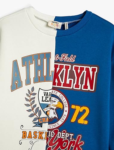KOTON - KOTON Boys Varsity Sweatshirt Color Block Brushed Interior Crew Neck Printed Sweatshirt