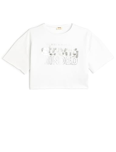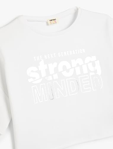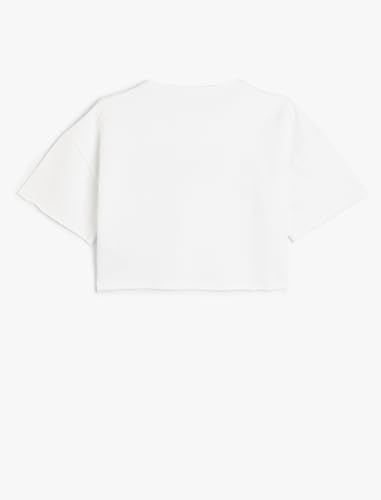 KOTON - KOTON Girl's Crop Oversized Printed Short Sleeve Crew Neck Tshirt