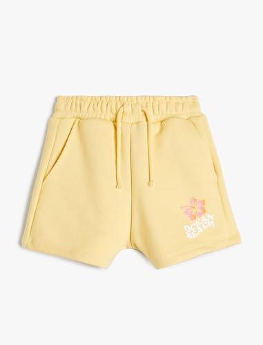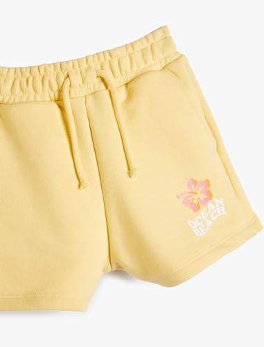KOTON - KOTON Girl's Drawstring Pockets Flower Printed Detail Short, 5/6 Years - Yellow
