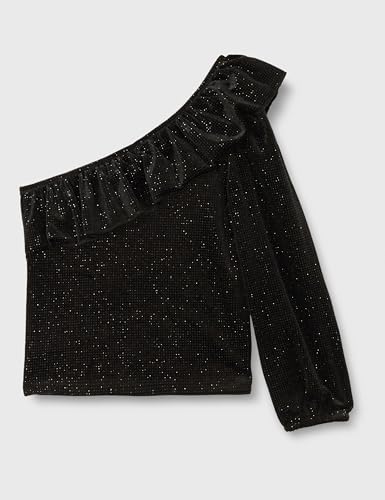 KOTON - KOTON Girl's One Shoulder Glitter Detail Ruffle Blouse, 4/5 Years - Black