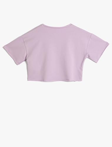 KOTON - KOTON Girls Crop Short Sleeve Crew Neck Printed and Bowtie Detail Tshirt