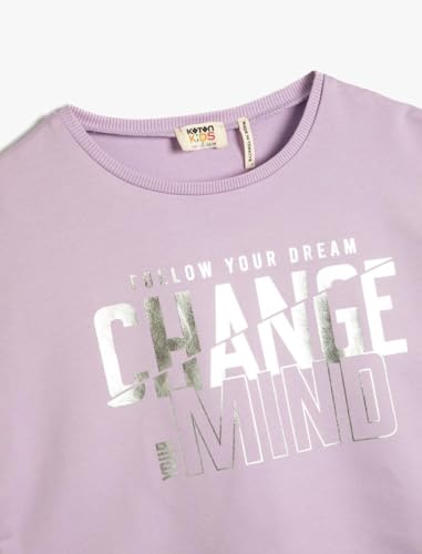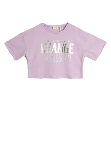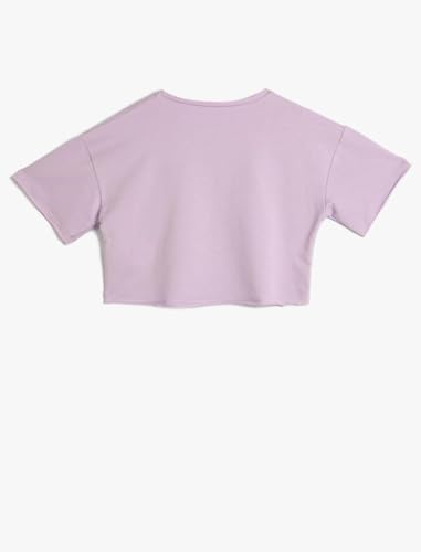 KOTON - تيشرت من القطن قصير بأكمام قصيرة ورقبة دائرية ضيقة مطبوع ومزين بفيونكة للبنات من كوتون، قطعة واحدة