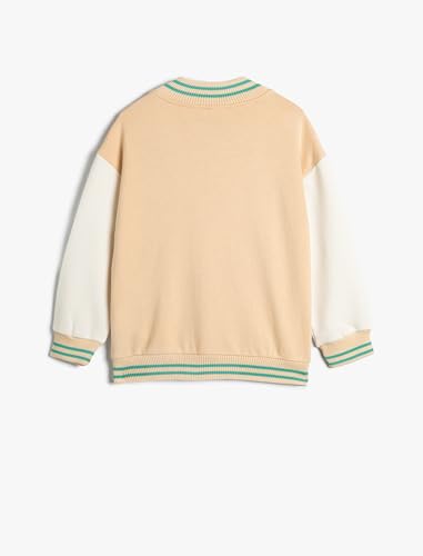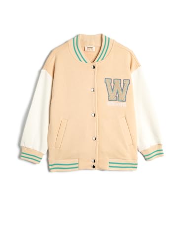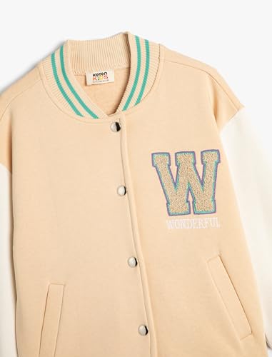 KOTON - KOTON Girls Oversize Bomber Varsity Applique Detail Round Neck Jacket