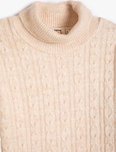 KOTON - KOTON Girls Turtle Neck Cable Knit Detail Long-Sleeves Soft Touch Pullover