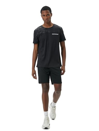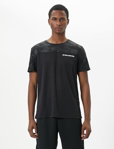 KOTON - KOTON Men's Crew Neck Slogan Printed Camouflage Detail Sport Tshirt