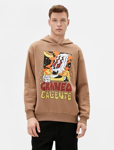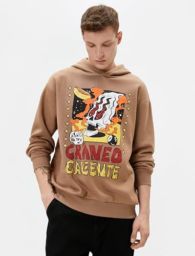 KOTON - KOTON Men's Tag Detail Skull Printed Oversized Hoodie