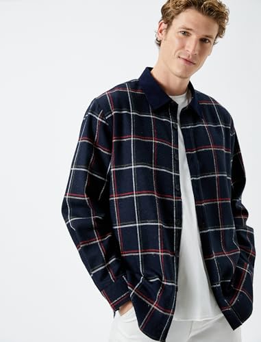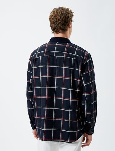 KOTON - KOTON mens Classic Neck Buttoned Long Sleeve Check Plaid Shirt (pack of 1)