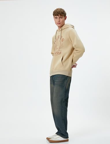 KOTON - KOTON mens College Printed Kangaroo Pocket Detail Hoodie