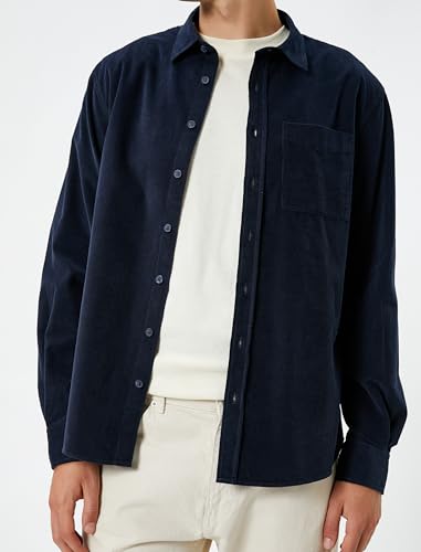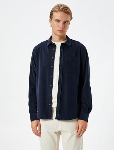 KOTON - KOTON mens Ribbed Classic Neck Pocket Detail Shirt