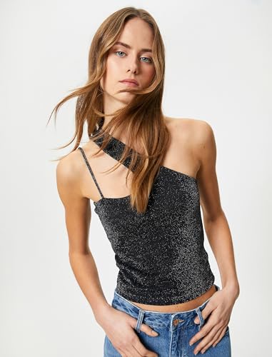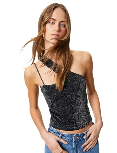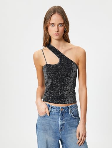 KOTON - بلوزة حريمي ميتاليك من كوتون بحزام كتف واحد وتفاصيل فتحةعلى الكتف، مقاس XS، لون أسود 999