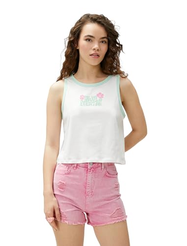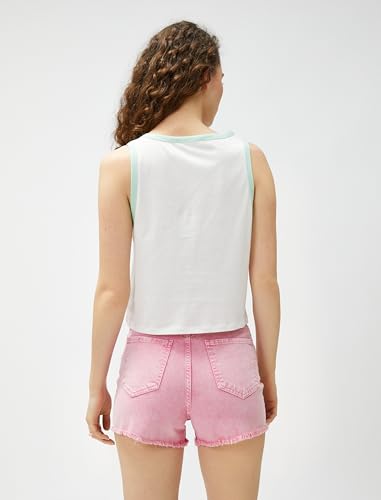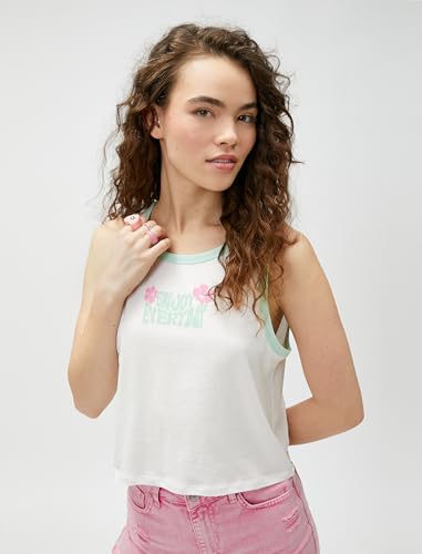 KOTON - Koton Women Binding Detail Cotton Crew Neck Printed Tank Top
