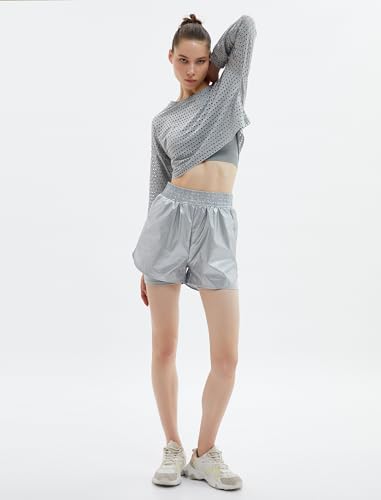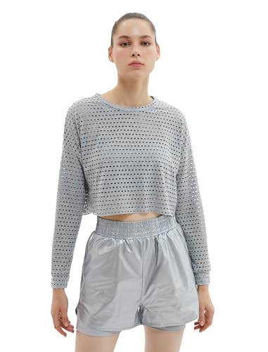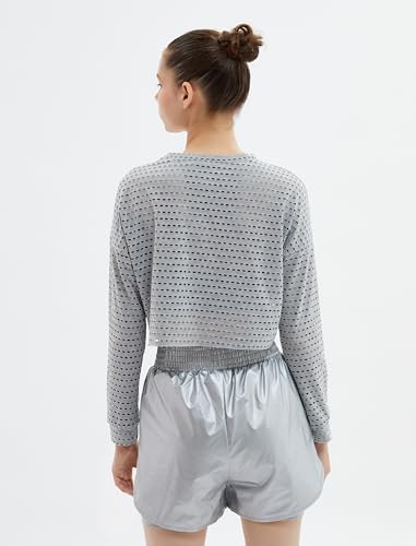 KOTON - KOTON Women's Ajoure Crop Sports Viscose Blend Long Sleeve Crew Neck Tshirt, S - Grey
