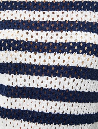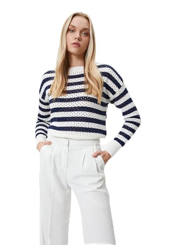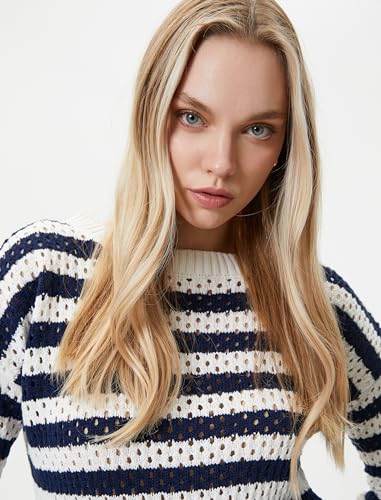 KOTON - KOTON Women's Long Sleeve Crew Neck Fishnet Sweaters, S - Ecru Stripe