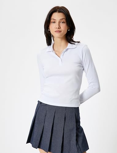KOTON - تيشرت بولو بأكمام طويلة ورقبة للنساء من كوتون