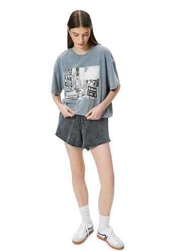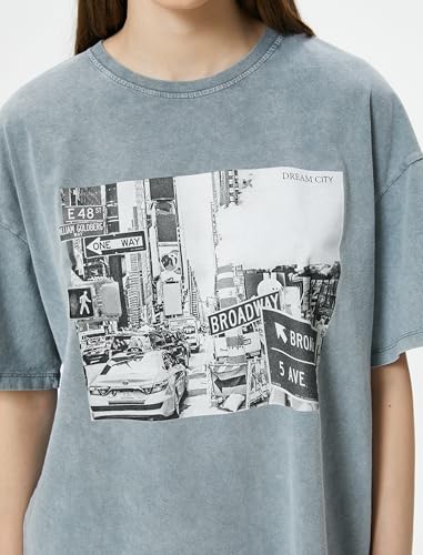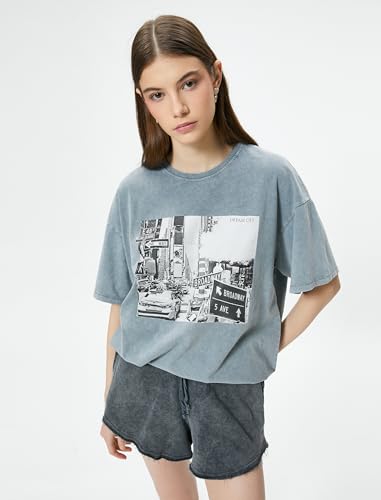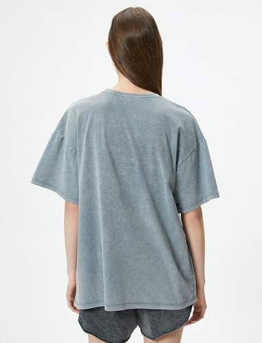 KOTON - KOTON Women's Printed Washed Effect Short Sleeve Crew Neck Relax Cut Tshirt