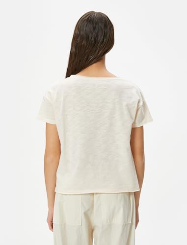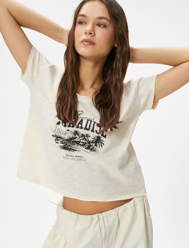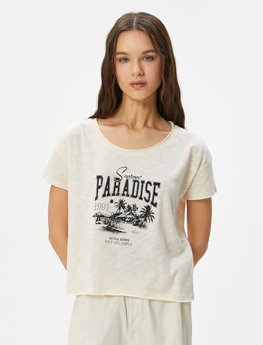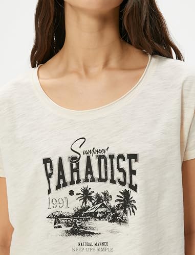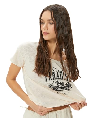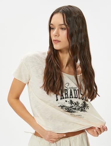 KOTON - KOTON womens Bateau Neck Printed Short Sleeve Tshirt
