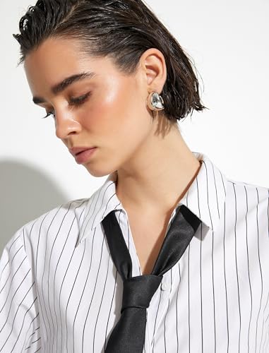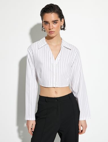 KOTON - KOTON womens Buttoned Classic Neck Long Sleeve Crop Shirt