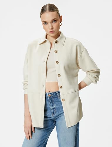 KOTON - KOTON womens Buttoned Suede Classic Neck Jacket