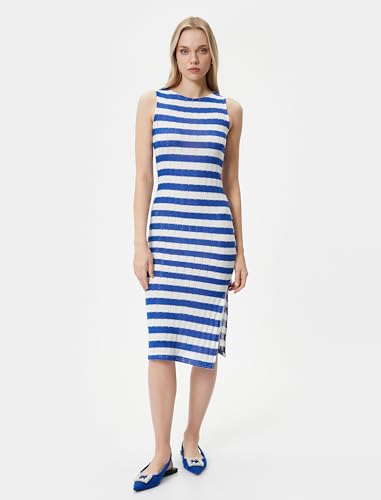 KOTON - KOTON Womens Crew Neck Slit Midi Dress Dress