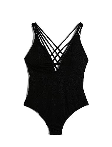 KOTON - KOTON womens Criss Cross Strappy Embroidered V Neck Swim Suits